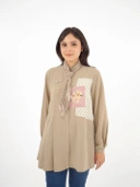 Shirt yang cocok bagi wanita bergaya simple namun tetap cantik dan elegan. Baju ini memiliki kombinasi motif yang menarik pada bagian dada, sementara bagian lengan dan badan baju polos. Cocok untuk ederra dames yang ingin tampil simple namun tetap modis.